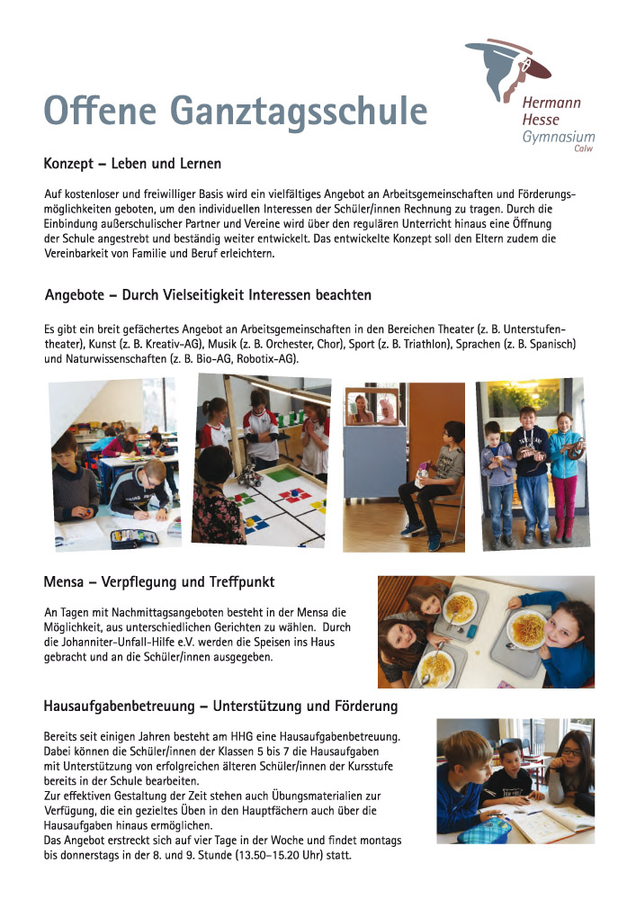 Eine spannende und lehrreiche Zeit – jetzt hier auf unserer Seite, am 20. Februar beim Tag der offenen Tür und im nächsten Schuljahr bei uns auf der Schule – wünschen alle Lehrerinnen und Lehrer, alle Schülerinnen und Schüler und die gesamte Schulleitung des Hermann-Hesse-Gymnasiums.